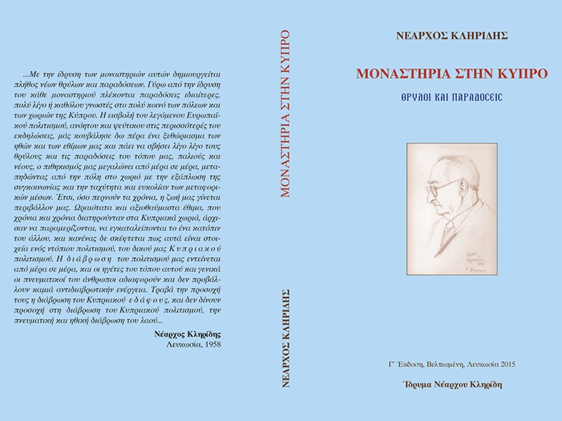 «Mοναστήρια στην Kύπρο - Θρύλοι και Παραδόσεις», Nέαρχου Kληρίδη, Επανέκδοση, Λευκωσία 2015